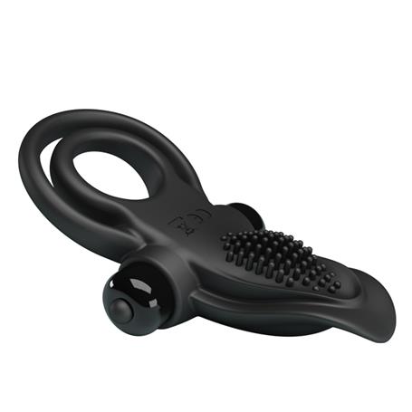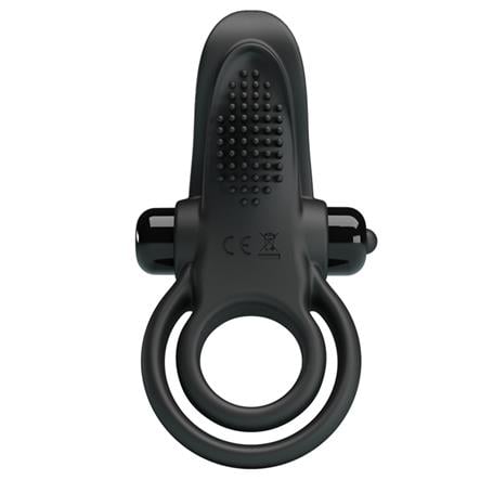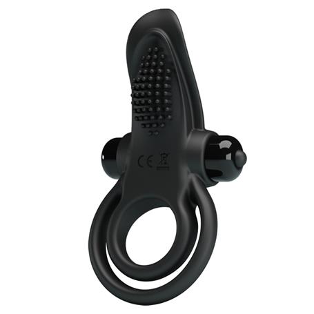 10 Titreşim Fonksiyonlu Klitoris Uyarıcılı Güçlü Titreşimli Siyah Silikon Penis Halkası