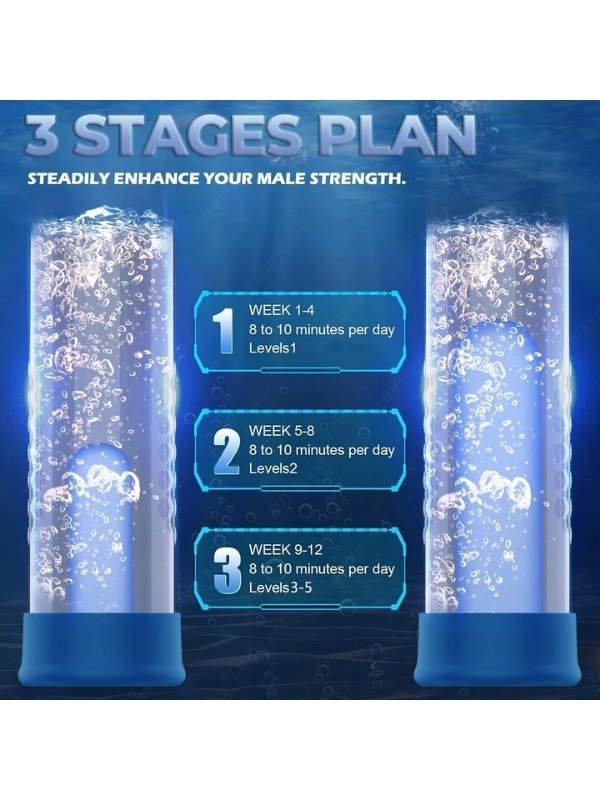 【2’si 1 Arada Pompa ve Büyütücü Erkek Mastürbatörleri】 Bu büyütücü iki amaca hizmet eder. İsterseniz bunu bir eğitim aracı olarak kullanabilir ya da otomatik emme özelliğine sahip bir mastürbatör kupası olarak kullanabilirsiniz. Eğitim modu, boyutunuzu büyütmek, daha uzun, daha güçlü hale getirmek ve ereksiyonunuzu daha uzun süre korumak için 4 farklı basınç ayarı sunar. İpucu: Yeni başlayanların 1. mod ile başlamaları tavsiye edilir. 【4 Eğitim Modu & 3 Otomatik Emme Yoğunluğu】 Bu büyütücü 4 farklı basınç moduna sahiptir. İlk 3 modda, basınç sırasıyla -35Kpa, -45Kpa ve -55Kpa seviyelerinde tutulur ve penisinizin vakum emişiyle daha iyi kanlanmasını sağlayarak cinsel performansınızı artırır. Dördüncü modda ise basıncı siz ayarlayabilirsiniz. Ayrıca, 3 farklı otomatik emme yoğunluğu ile mastürbatör olarak da çalışabilir. İpucu: Eğitim öncesinde penisinizi yaklaşık %30 ereksiyon haline getirmek için masaj yapmanız önerilir. 【Sıcaklık Eğitimi】 Sıcak ve soğuk su pompası ile penis egzersizlerinizi yapabilirsiniz. Ilık su (104 Fahrenheit derecesinin altında) dolaşımı artırır, damarları genişletir ve daha fazla oksijen ve besin sağlar. Soğuk su (50 Fahrenheit derecesinin üzerinde) ise karıncalanma hissi verir ve tutkuyu artırmanıza yardımcı olur. 【12 Akıllı Eğitim Modu Kombinasyonu】 Daha fazla çalışın, daha fazla kazanın! 4 basınç seviyesi ve 3 farklı eğitim modu ile kişiselleştirilmiş kullanım imkânı sunar, böylece performansınızı dönüştürebilirsiniz. Cinsel sağlığınızı ciddiye alıyor ve çaba göstermeye hazırsanız, bu büyütücü hedeflerinize ulaşmanıza yardımcı olacak en güçlü araçtır. 【Çok Yönlü Kullanım Alanları, Çoklu Uyarıcılar】 IPX7 su geçirmez özelliği, bu eğitici cihazın hava dışında suyla da kullanılmasını sağlar. Silindire farklı sıcaklıklarda su ekleyerek penisinizi hem eğitip hem de suda daha fazla uyarım sağlayabilirsiniz. Banyo veya duşta ıslak maceraların tadını çıkarabilirsiniz. Şeffaf tüp üzerinde dereceli işaretler bulunur, böylece değişiklikleri gözlemleyebilirsiniz. İpucu: Yaralanmaları önlemek için çok sıcak veya çok soğuk su kullanmaktan kaçının. 【Sökülebilir ve Kolay Kullanım】 Bu büyütücü cihaz, 4 tane net bir şekilde etiketlenmiş fonksiyon tuşuna ve basınç izleme ekranına sahiptir. Cihazı açtıktan sonra ilgili tuşa basarak eğitime başlayabilirsiniz. İstediğiniz ereksiyona ulaştığınızda, güvenliğiniz için basıncı serbest bırakma tuşuna basarak basıncı duraklatabilir ve boşaltabilirsiniz. Mastürbatör modu ayrı bir tuşla kontrol edilir. Sökülebilir ve su geçirmez tasarımı, temizliği son derece kolay hale getirir.