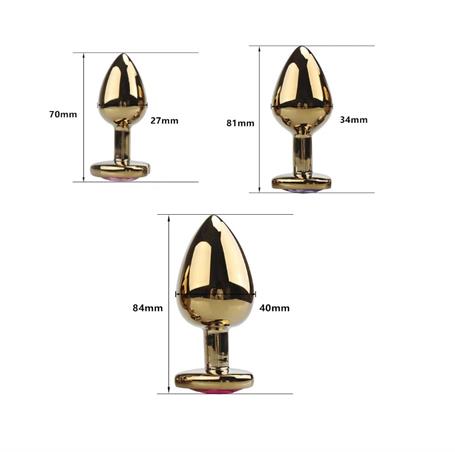 Kalp Mücevherli Paslanmaz Çelik Altın Gül Anal Plug Alıştırma Seti