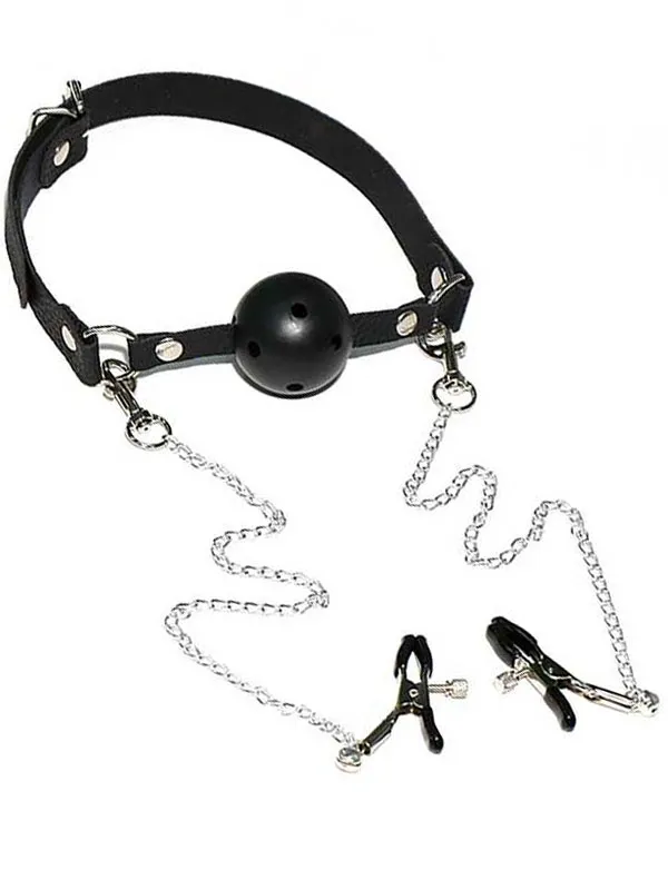 NOXXX Ağız Topu ve Göğüs Klipsi Delikli