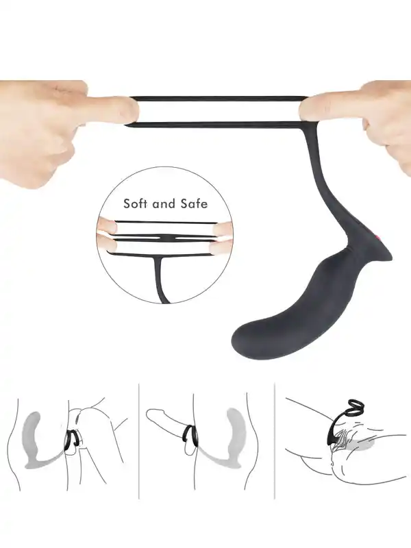 Prostat (g-spot), anüs, penis ve testis halkaları ile üçü birarada anal masaj vibratörü.